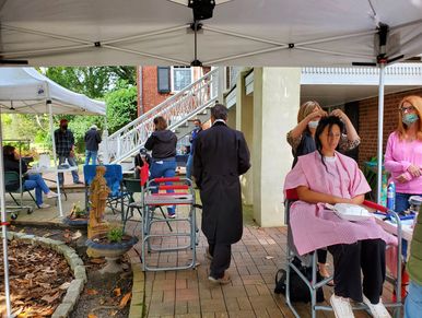 Getting her hair done is Gina Ferraro, a well known Actress. She played the "mean Mom" in Naomi Wise.